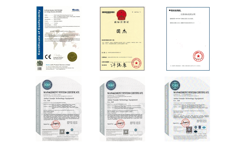 安徽圓杰科技裝備有限責任公司成立至今,堅持以領先的技術、優(yōu)良的商品、完善的售后服務、微利提取的原則服務于社會。產品企業(yè)都通過 ISO9001國際質量體系認證,ISO14001環(huán)境管理體系認證,先后獲得了質量信譽雙保證示范單位、中國高新技術企業(yè)、全國辦公家具行業(yè)十大暢銷品牌等榮譽稱號。所生產的產品得到了政府及教育主管部門的認可和支持,并得到了客戶的一致認同及市場的好評,現已成為中國教育裝備行業(yè)協會會員單位。